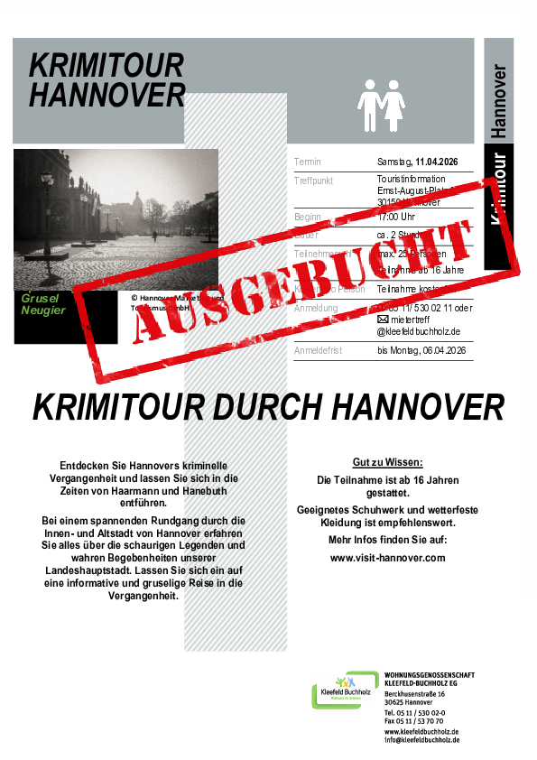 Leider ausgebucht! Hannover kriminell: Eine spannungsgeladene Führung durch Hannovers Innenstadt.