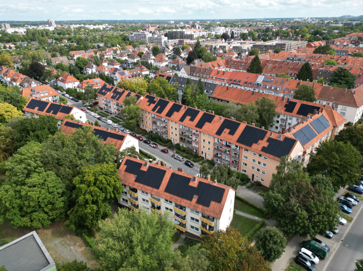 Am 04.09.2025 präsentierte die Wohnungsgenossenschaft Kleefeld-Buchholz eG gemeinsam mit dem Projektpartner EINHUNDERT Energie während eines Mieter-Informationsevents die erfolgreiche Umsetzung des Photovoltaikprojekts im Quartier Andersenstraße. Bei diesem Event wurden Drohnenaufnahmen der neuen PV-Anlagen angefertigt, um die bauliche Umsetzung eindrucksvoll zu dokumentieren.